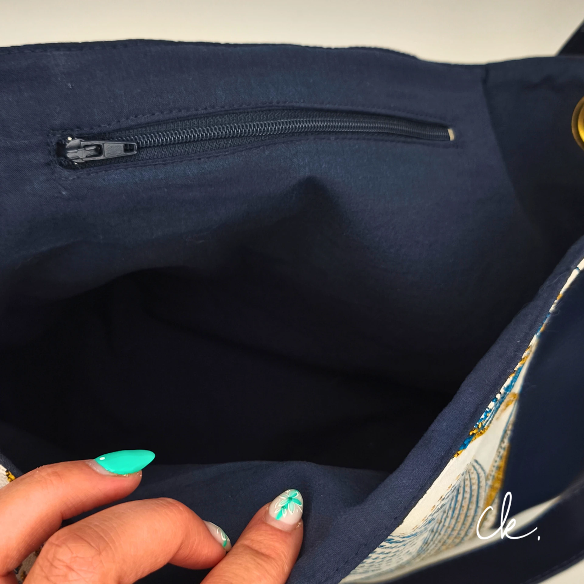 - Doublure en coton bleu marine.